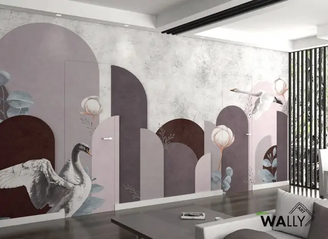 • Il cigno, candido e di colore bianco, tra le arcate dai toni rosati.Nota:Richiedi questo prodotto per interno doccia, zone bagno, paraschizzi cucina o ambienti esterni cliccando QUI