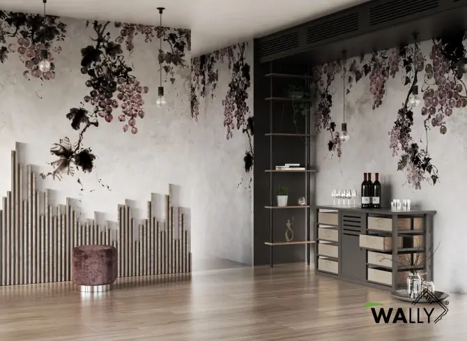 • Grappoli d'uva che cadono dall'alto in uno stile elegante e vintage. Nota:Richiedi questo prodotto in Fibra di vetro per interno doccia, zone bagno, paraschizzi cucina o ambienti esterni cliccando QUI