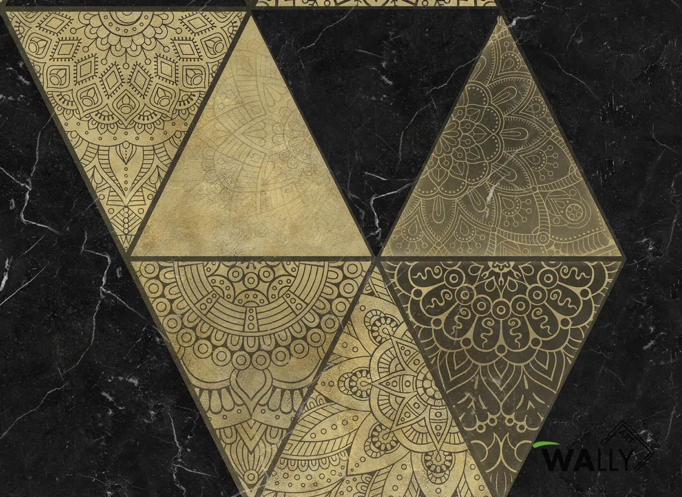| Tags | oro, nero, triangoli, decori, ornamenti, mandala, marmo, classico, moderno, salone |