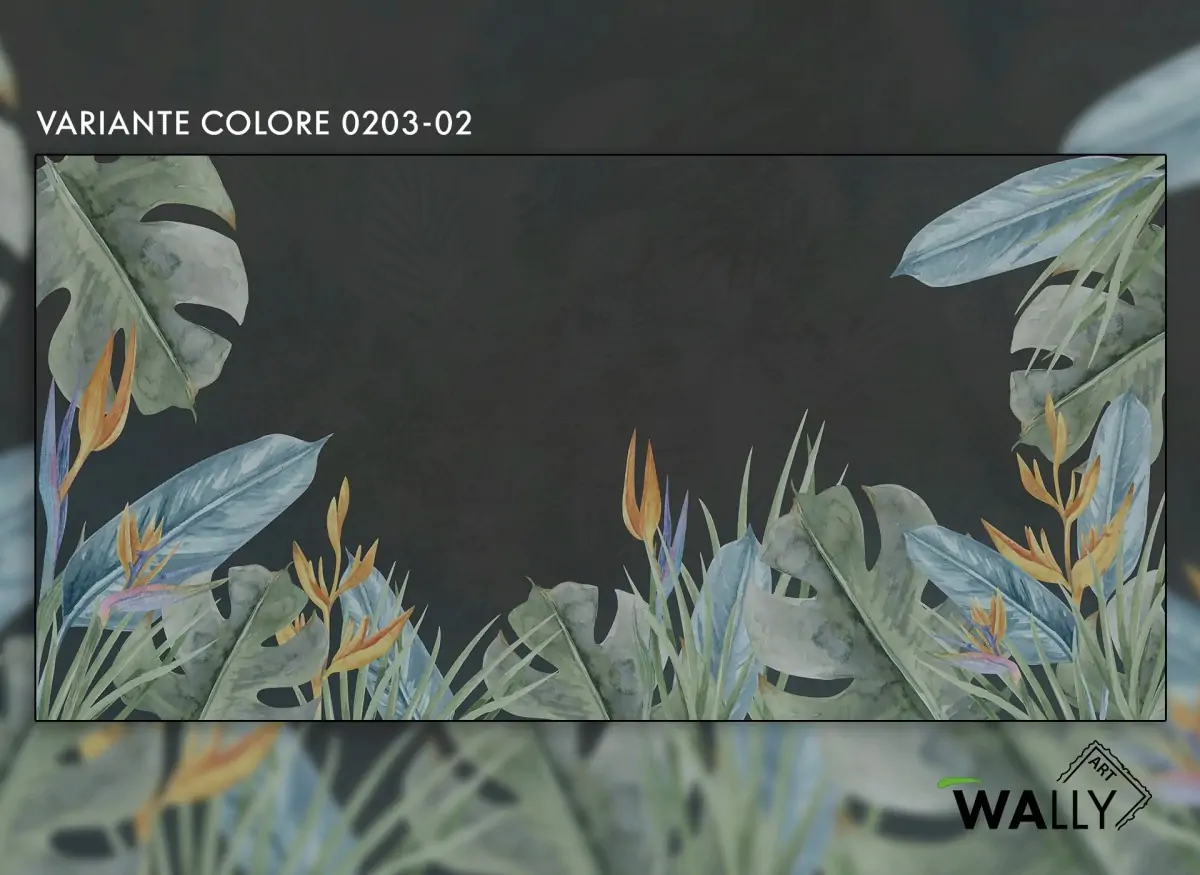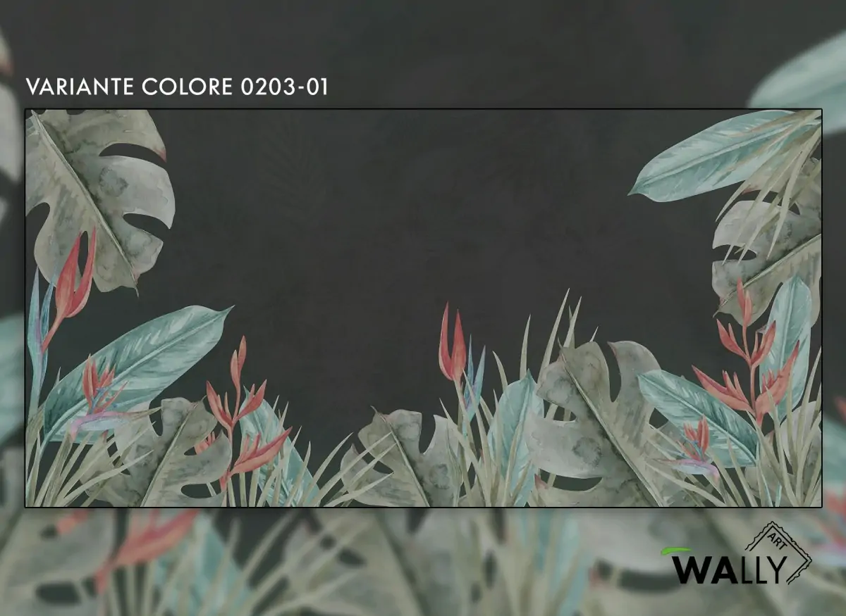 Il tropical a colori su fondo scuro. Un'immersione totale in una vegetazione dai toni atipici.