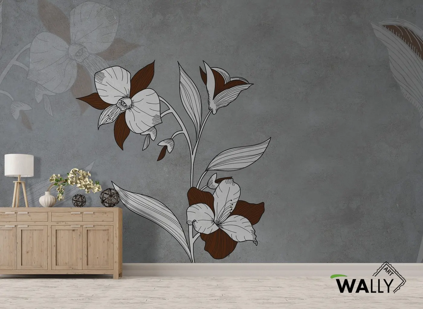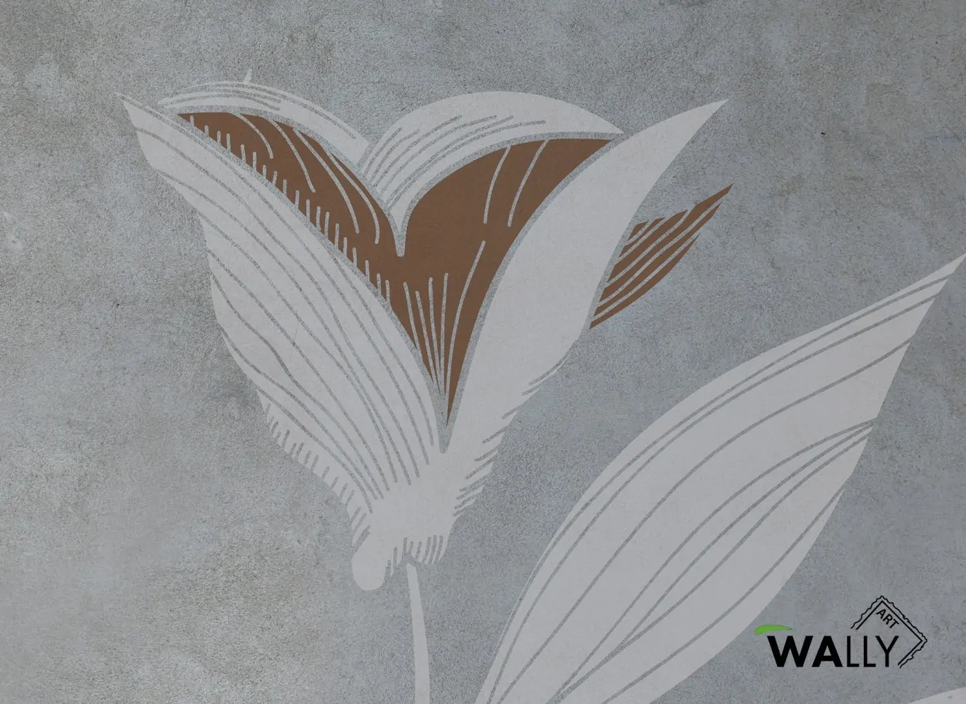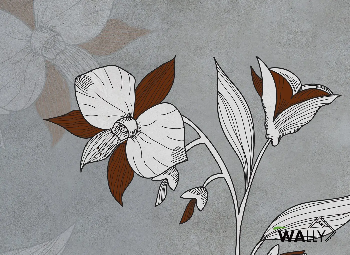 In primo piano l'eleganza del fiore che sboccia a cui fa da cornice una texture di fondo effetto pietra con particolari in bordeaux. Ideale per chi ama elementi floreali dal carattere minimal.