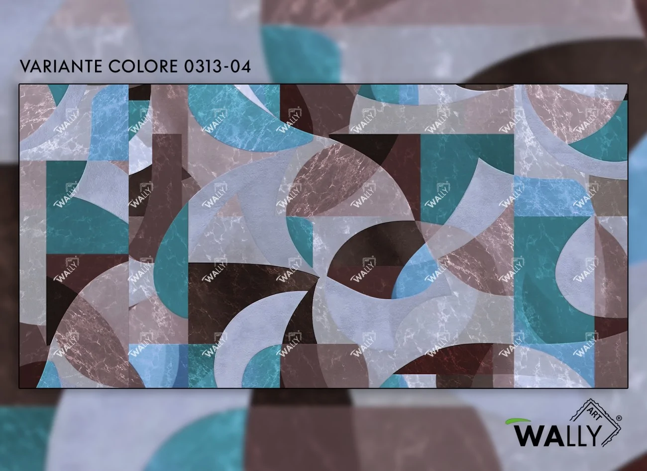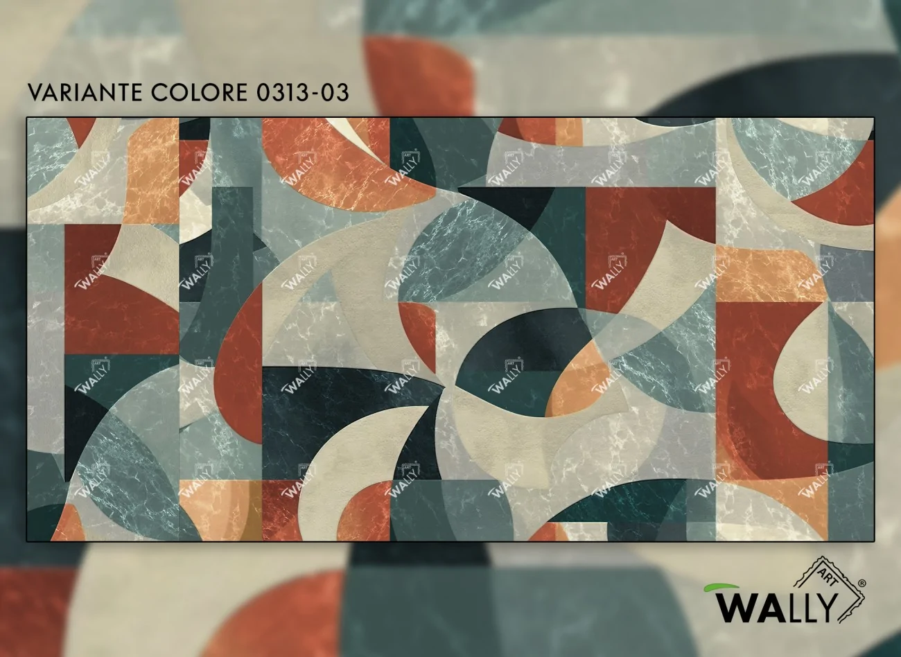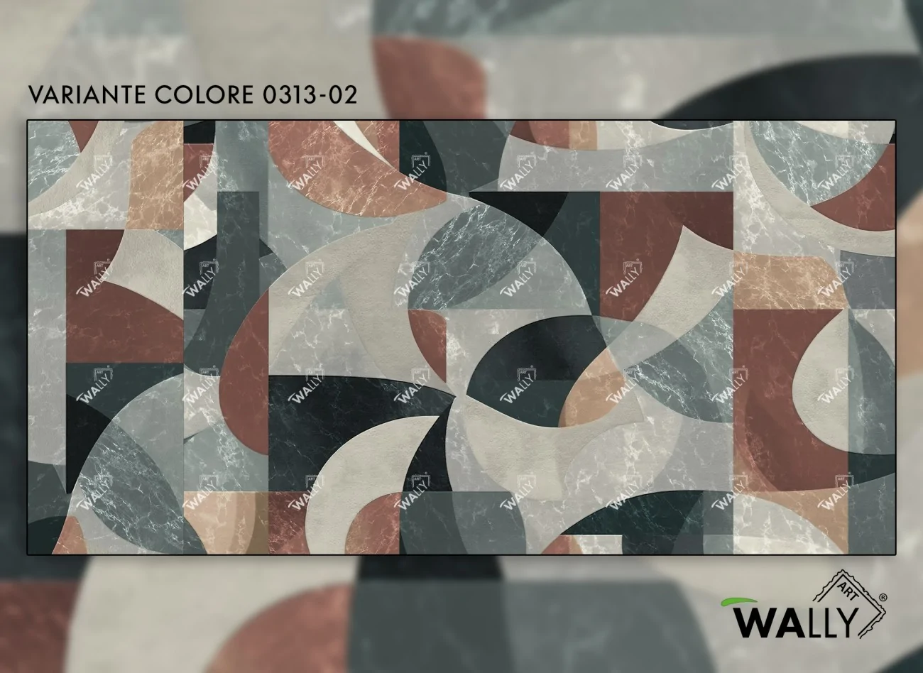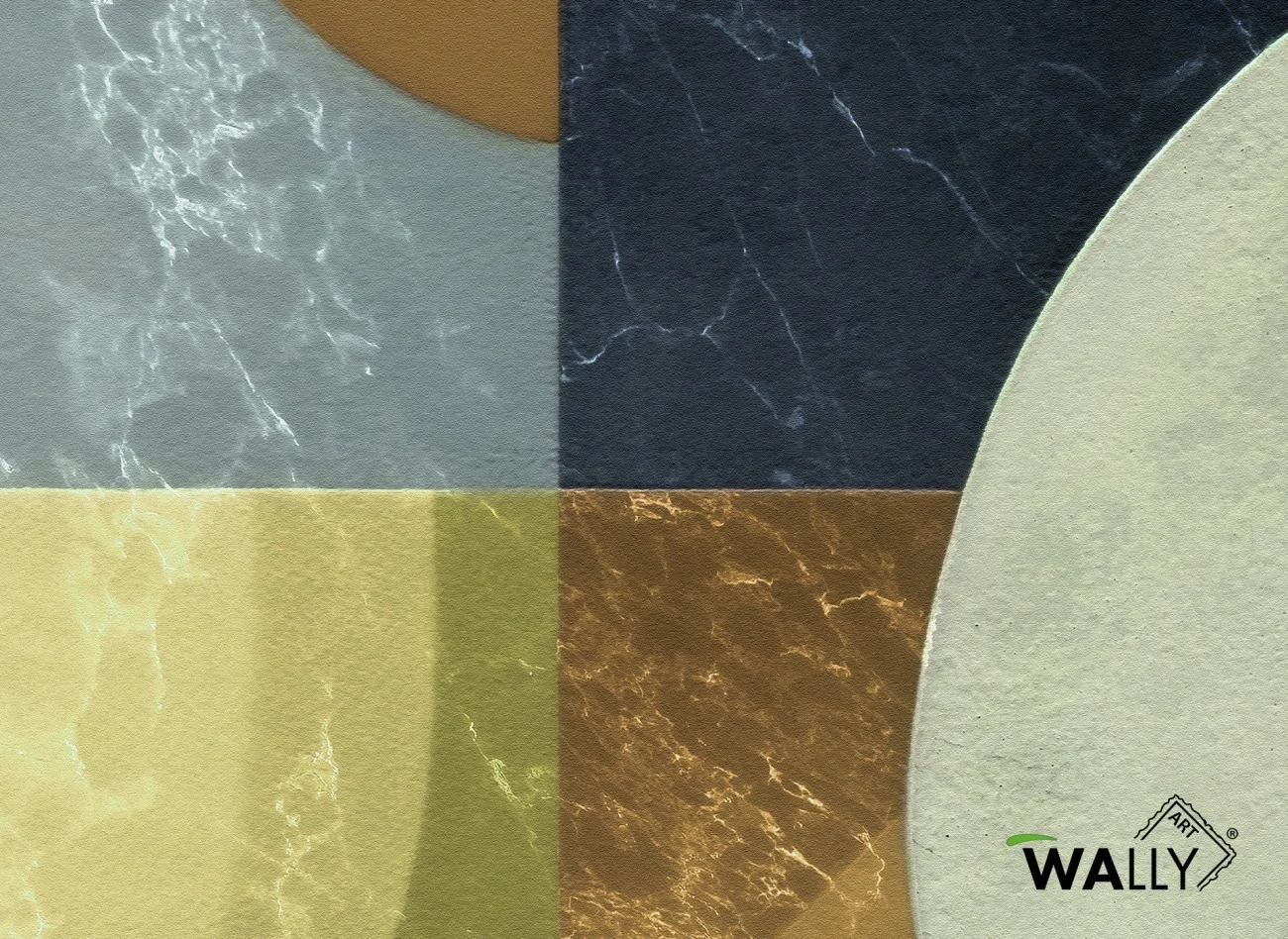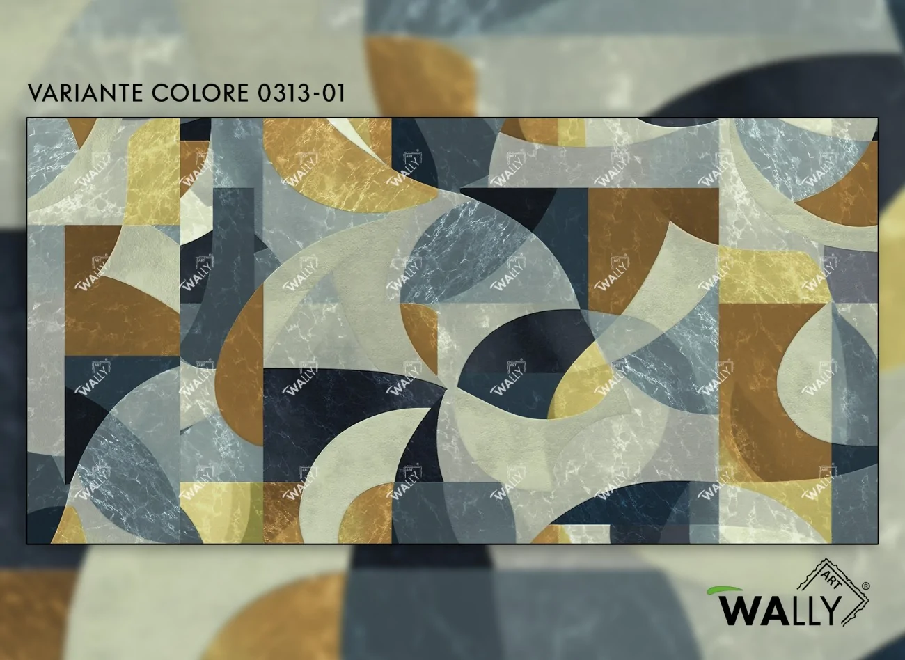 Forme geometriche si arricchiscono di venature effetto marmo.