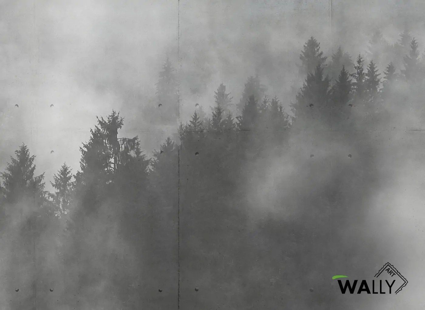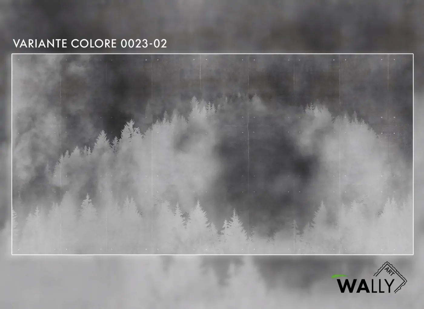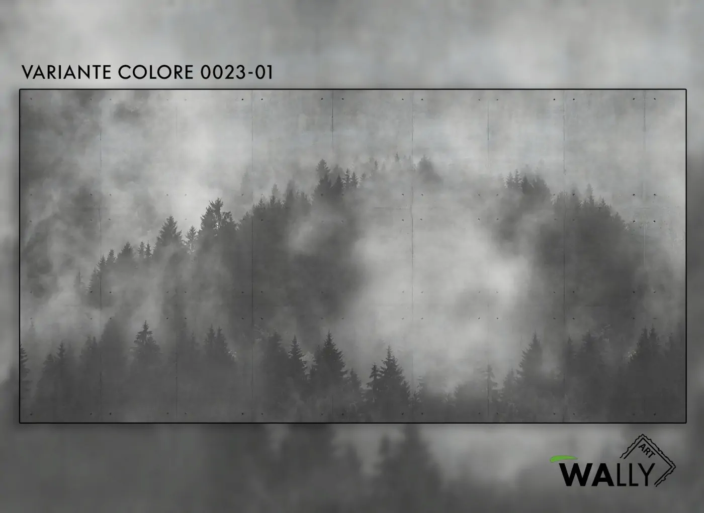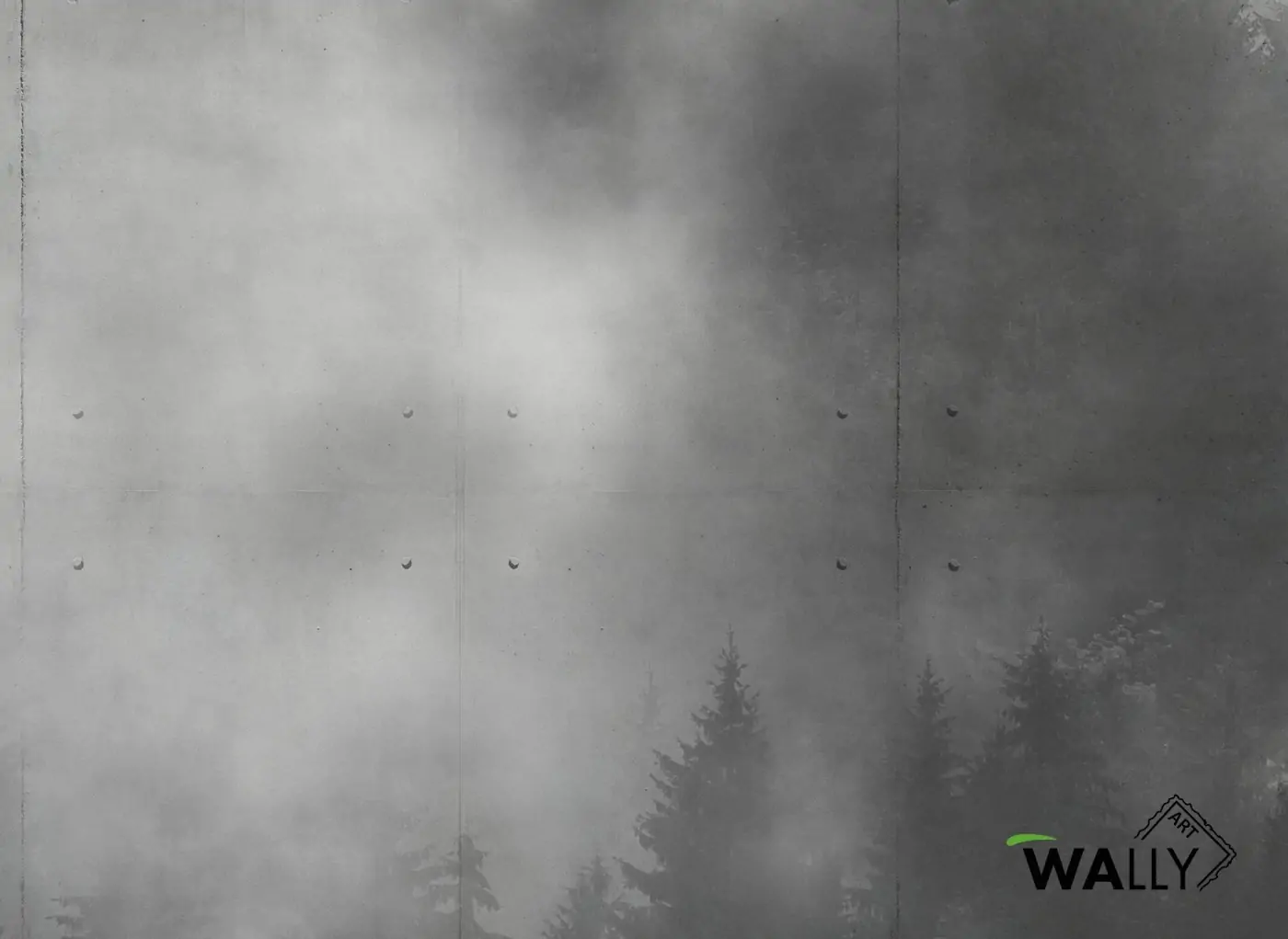 L'austerità della foresta che sfuma su un muro in cemento armato. Grande impatto emotivo per questa Artwork dai colori scuri.