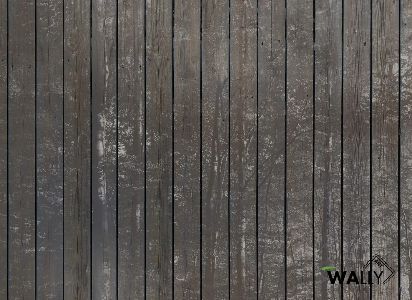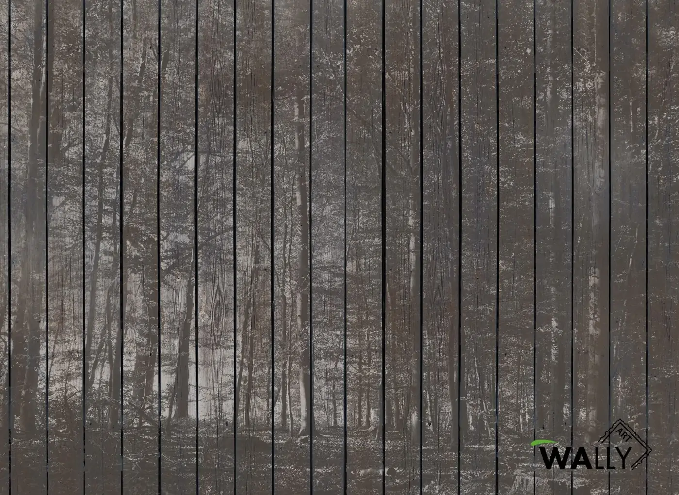 Una impressionante foresta su una texture con tavole in legno grezzo. Per arredare in maniera elegante qualsiasi ambiente.