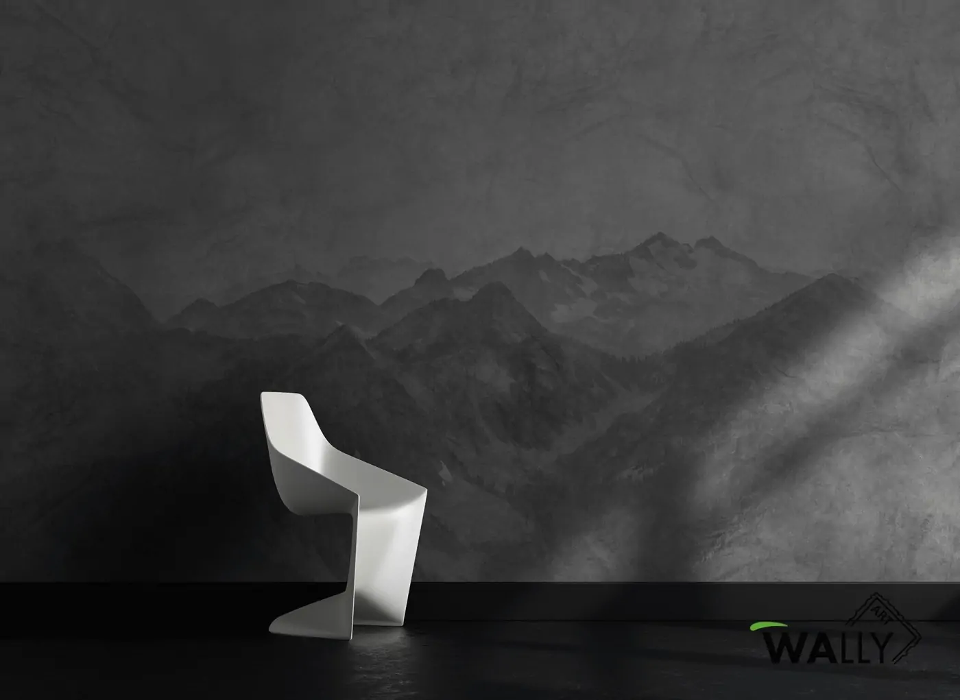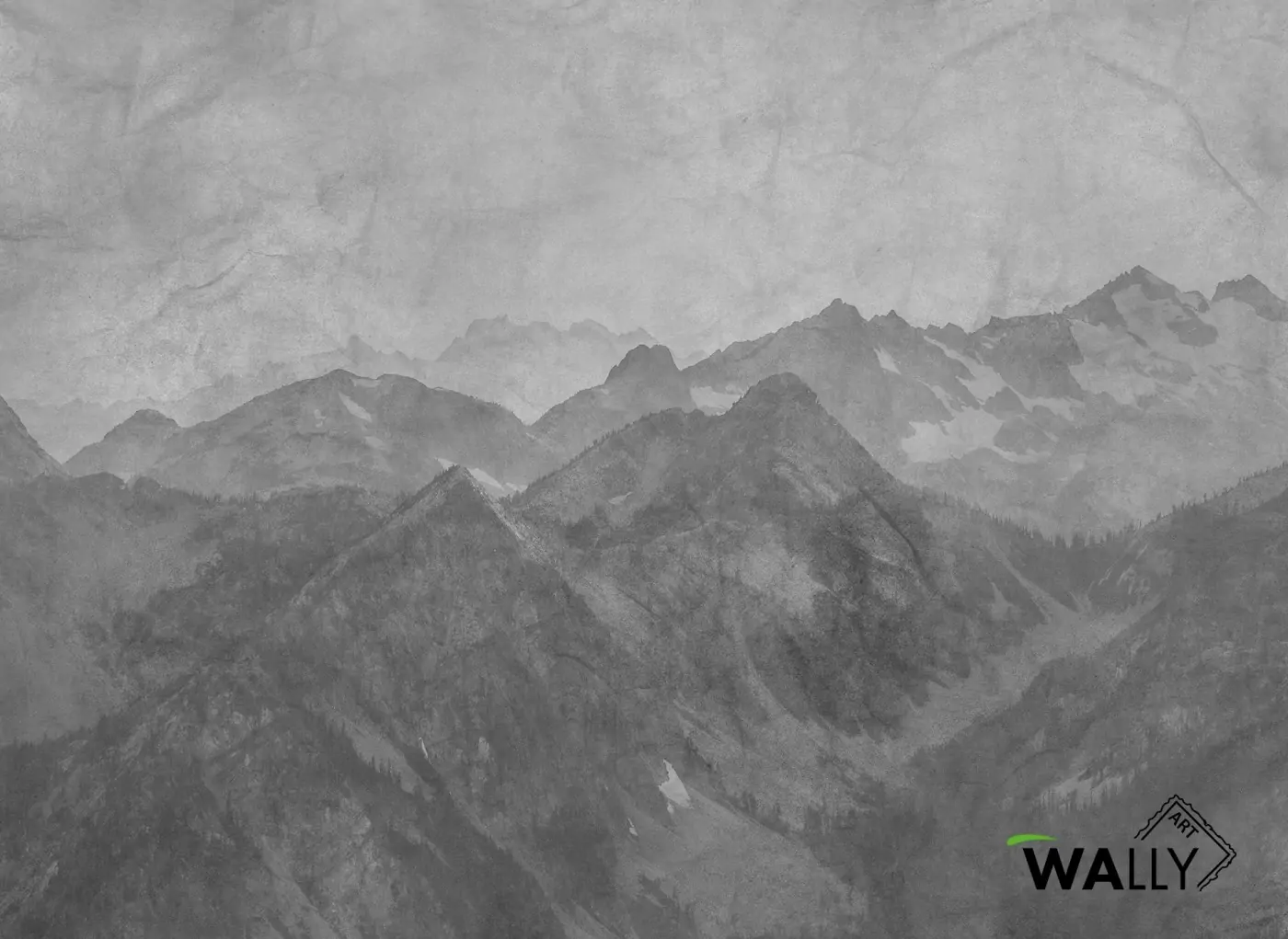 Montagne rocciose su sfondo sabbioso in toni di grigio. Artwork semplice ma di grande impatto visivo.