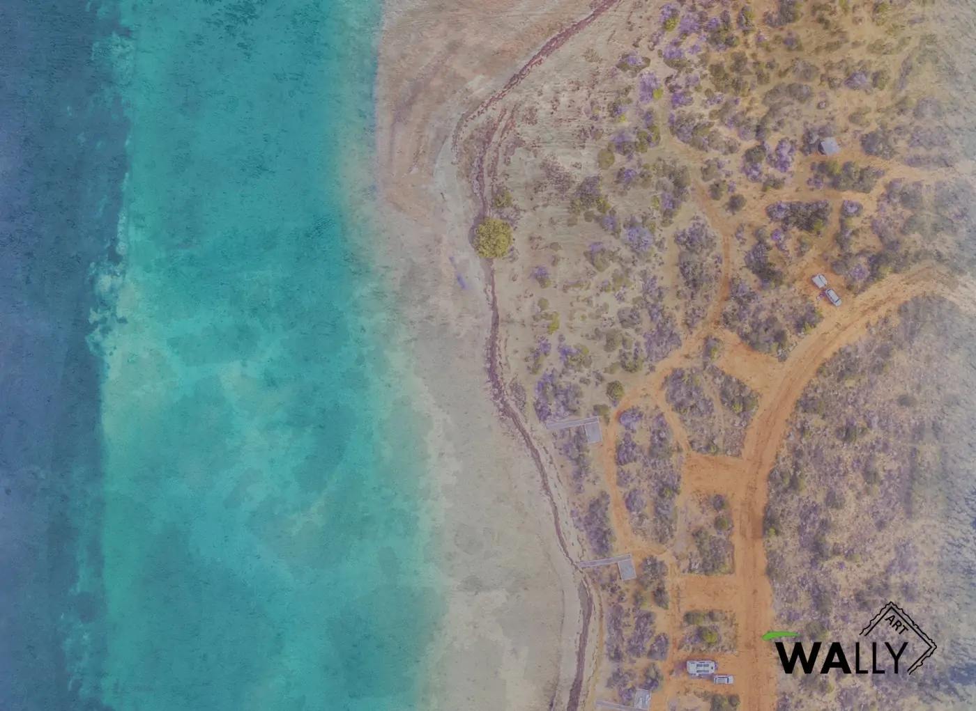 Da una foto aerea nasce l'essenza di questa Artwork a tema Australia. L'immensità delle onde, l'equilibrio dei colori, note di mondi lontani che si fanno sempre più vicini fino quasi a travolgersi.